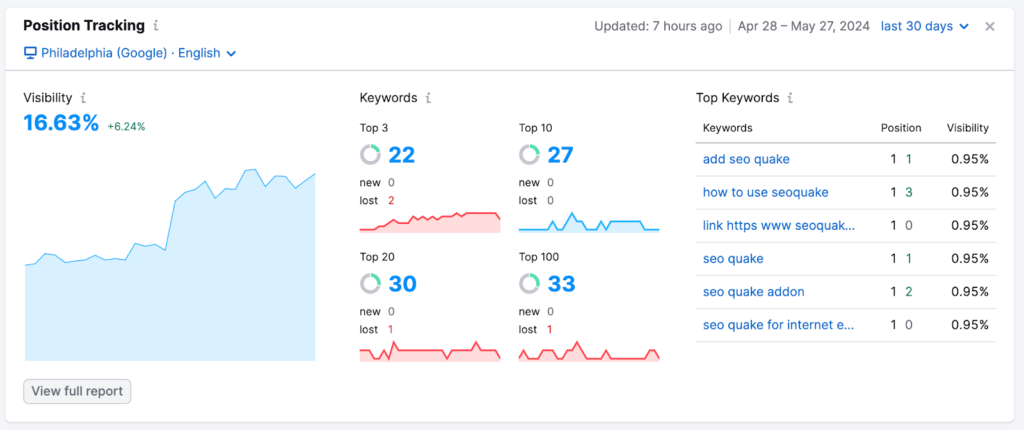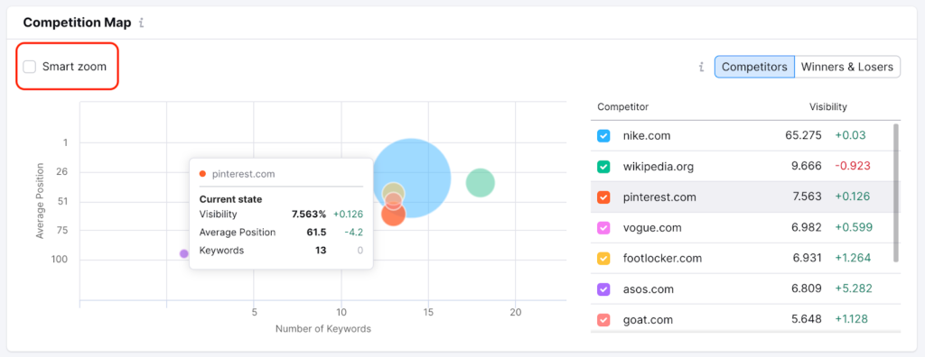This doesn’t give a single “visibility %” like Position Tracking, but it helps validate whether your tracked visibility reflects your real organic footprint.